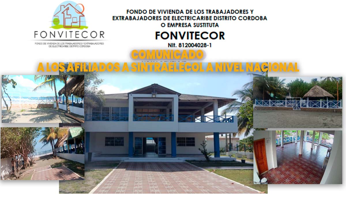 La Junta Directiva del Fondo de Vivienda FONVITECOR y SINTRAELECOL Subdirectiva Córdoba, se complace en poner a disposición de todos los afiliados de todas las subdirectivas de SINTRAELECOL a nivel nacional, la sede recreacional y campestre ubicada en las playas del sector La Ye, en el municipio de San Bernardo del Viento, un entorno natural privilegiado ideal para el descanso, la integración familiar y el disfrute responsable del territorio.